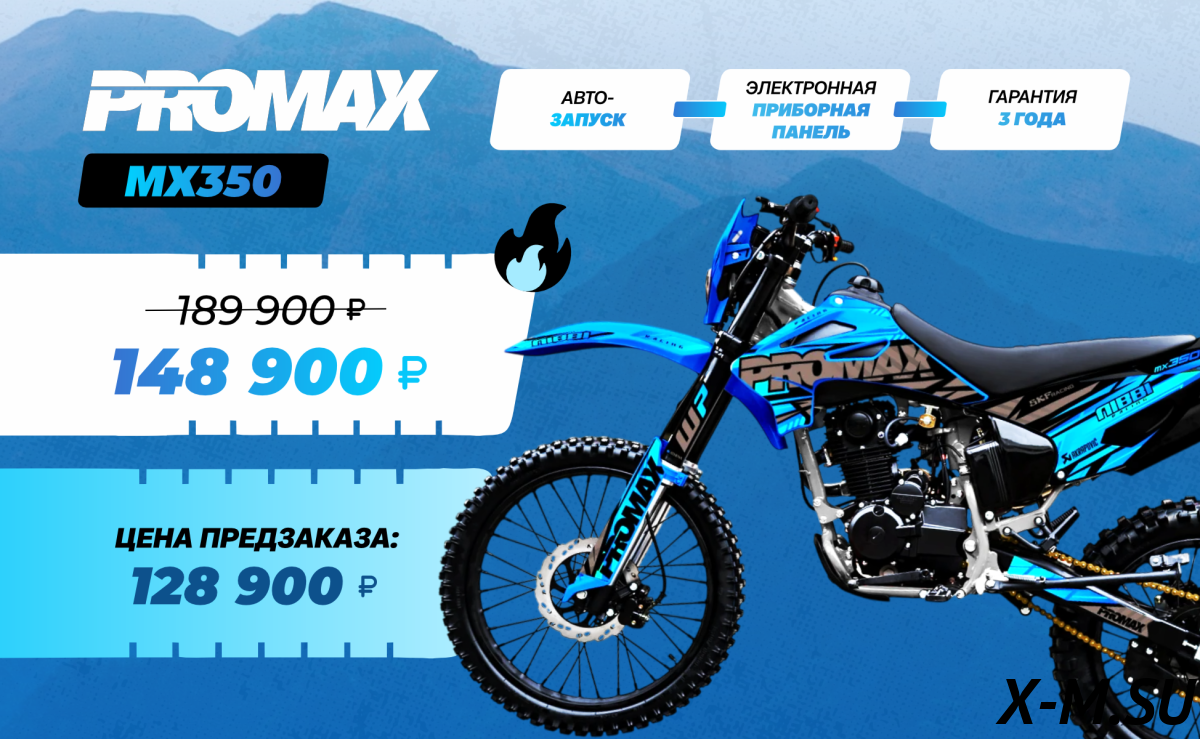 Цена на товар Кроссовый мотоцикл PROMAX MX350 не является итоговой и может измениться в зависимости от валютных курсов, общей экономической ситуации или логистических и иных факторов.